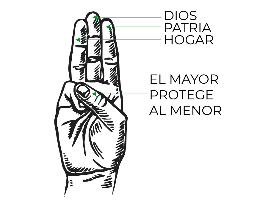 “Por mi honor y con la gracia de Dios prometo hacer todo cuanto de mí dependa para cumplir mis deberes para con Dios y la Patria, ayudar a mi prójimo en toda circunstancia y cumplir fielmente la Ley Scout.”