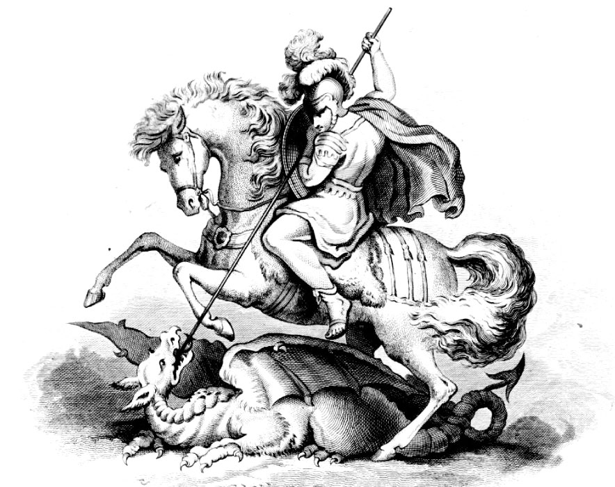Según la leyenda, San Jorge fue un caballero que mató a un dragón para rescatar a la princesa Cleolinda, hija del rey de Selem.
